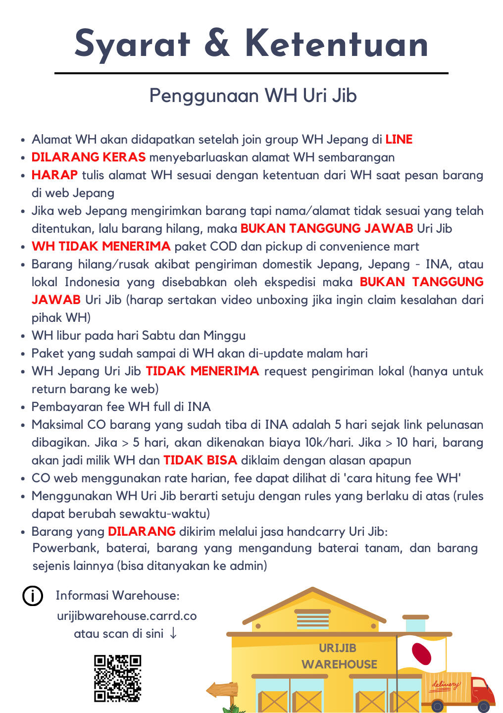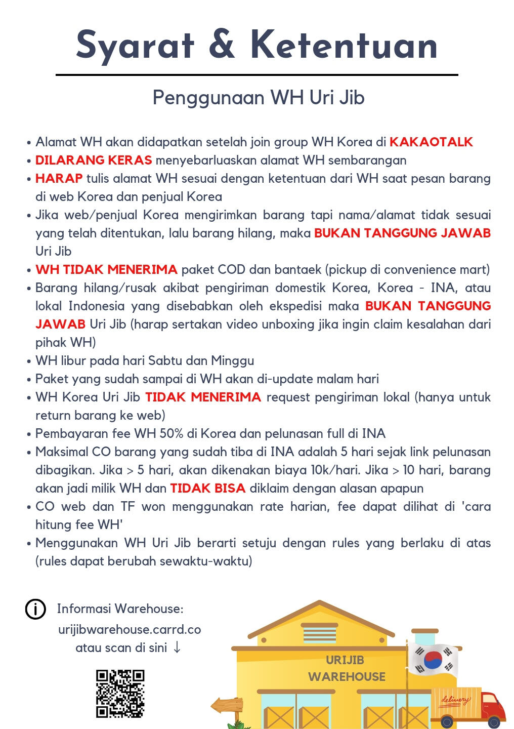 - Masa sewa di WH Korea adalah 30 hari, jika lewat dari 30 hari barang TIDAK BISA klaim dengan alasan APAPUN
